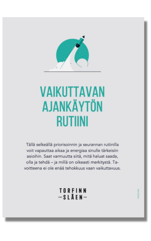 Kirja tarjoaa kevyen mutta syvällisen tavan kehittää työtapoja suoraan arjen keskellä. Ei lisää tehtäviä. Ei tsemppaamista. Vaan rakenteita, kysymyksiä ja tarkistuspisteitä, jotka auttavat tekemään työstä hallitumpaa ja kestävämpää.