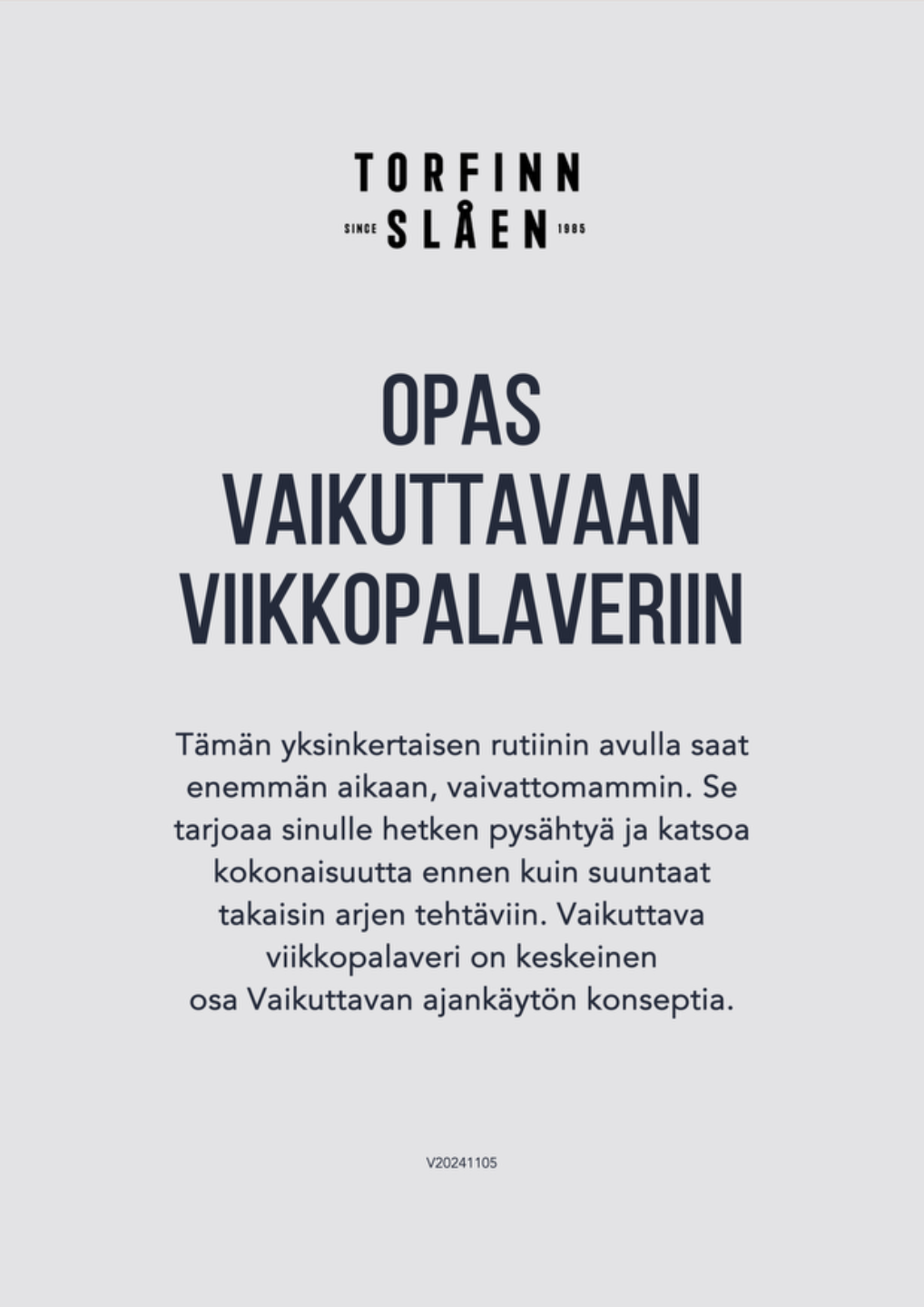 Hyväksyn, että minulle saa lähettää tietoa Vaikuttavasta ajankäytöstä. Voin milloin tahansa poistua Torfinn Slåenin postituslistalta.